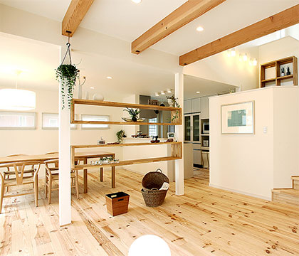 家族がいつも集う場所、リビング。しかし、そのリビングには収納が足りないのが一般的です。当社では、リビング収納の工夫により、開放的で居心地のいいリビングを実現します。