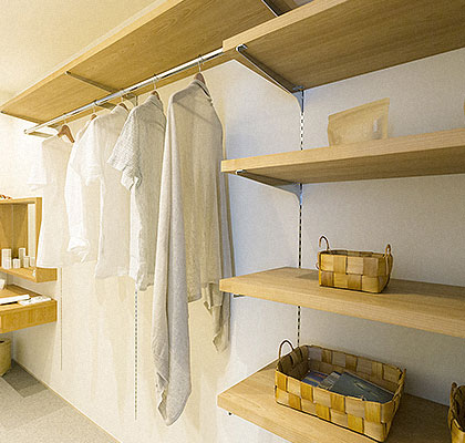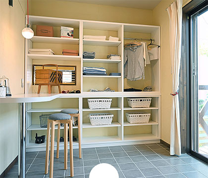 夫婦2人住まいなら、部屋はそれほど多く必要ありません。だから部屋数を減らして、そのまま入れるウォークイン・クローゼットに。たくさんの荷物や衣服が収納でき、取り出しやすい便利なスペースです。