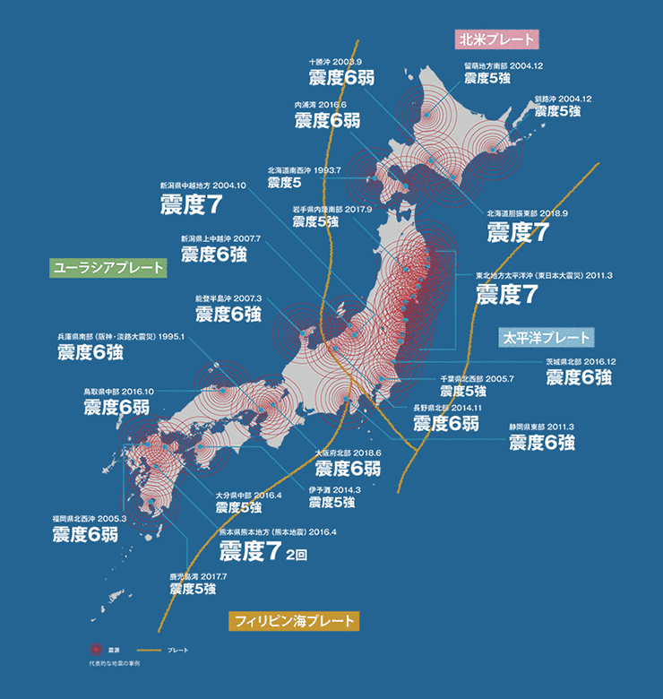 軟弱な地盤は特に都市部に多く、注意が必要です。軟弱地盤は揺れが大きくなるので、壁も50%増しにするよう建築基準法で定められています。