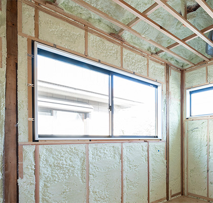 発泡ウレタンの吹き付け断熱材を採用。高い断熱性能と現場形状への密着力による気密性を提供し、自己接着力で長期間の断熱性能を保持。冷暖房効率向上により、光熱費大幅節約も可能になります。シックハウス原因素材ゼロで、VOCを含まない特定建材指定なし。
