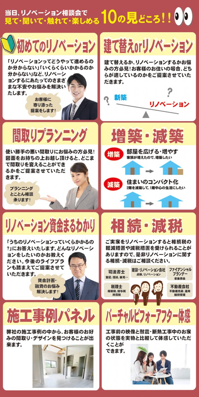 | 場所 | YUYUリノベ(福岡・北九州・久留米など)各ショールーム・展示場 |
