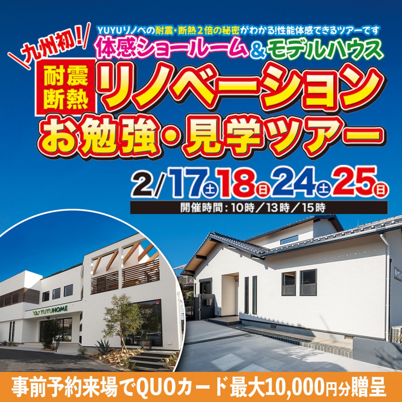 九州初!住宅の性能を見て聞いて比較体感できるショールームで耐震や断熱の重要性が分かります。さらに築50年のお家をリノベーションしたモデルハウスを見学していただき、新築にも劣らないリノベーション技術を知っていただけるツアーとなります。特に大規模リノベーションを検討中の方は、工事後に後悔をしないようお勉強をしませんか?ぜひお気軽にお問い合わせください。