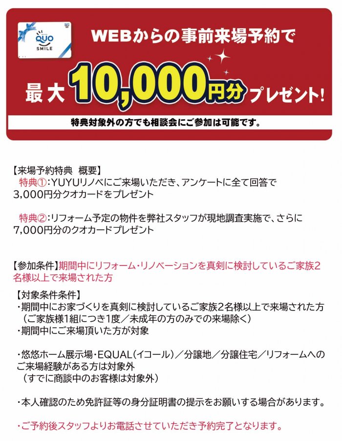 | 備考 | 【特典】事前ご来場予約でQUOカード最大10000円分プレゼント! |