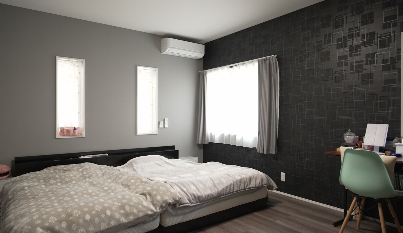 ベッドをふたつ置いてもまだ余裕のある広さの寝室。以前は来客時に応接室として使っていたそうです。とってもモダンなご夫妻の部屋として生まれ変わりました。特徴的なのは左右どちらからでも行けるWICの存在。まさにモデルハウス仕様です。
