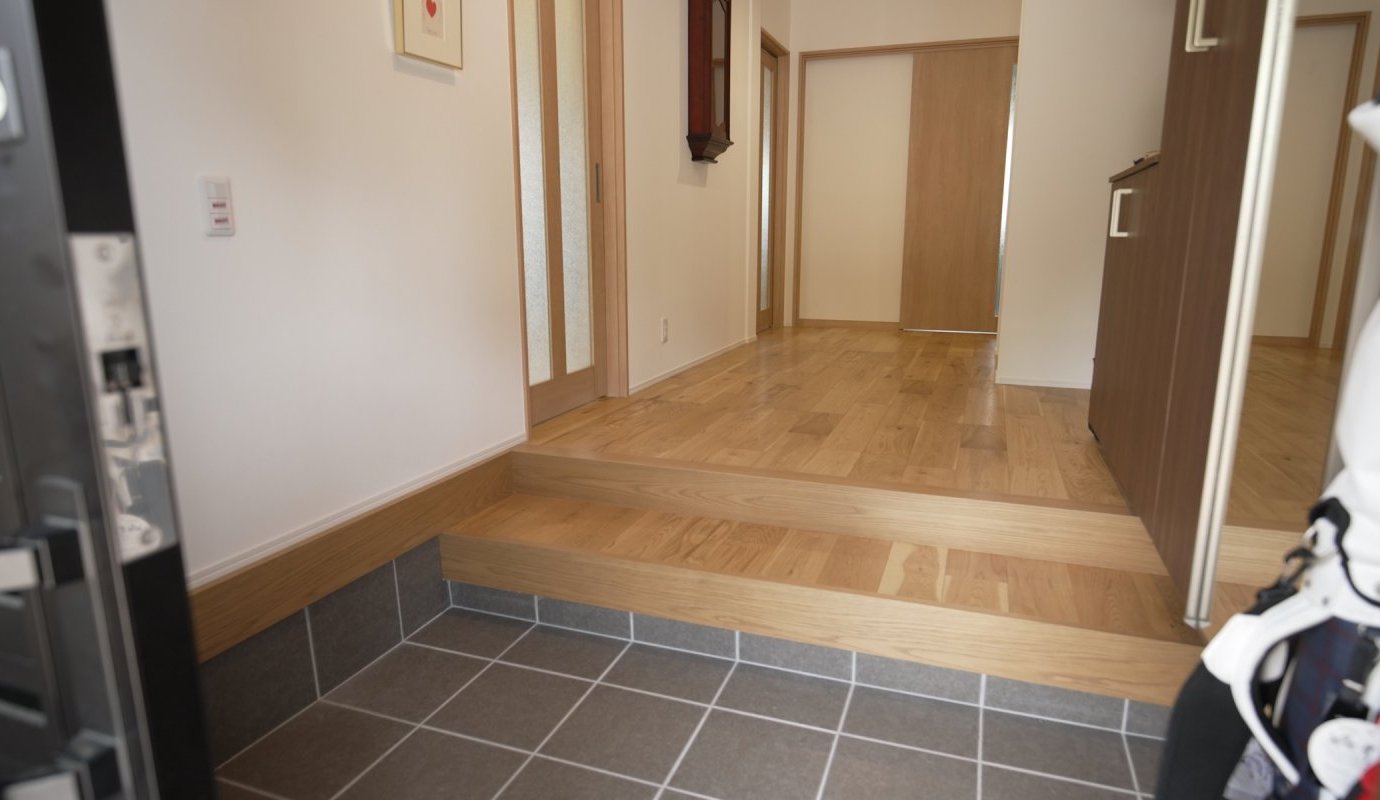 伝統の日本家屋そのままに、一部屋分ほどもありそうな広々とした玄関ホールには、リビング、階段、洗面、寝室、お父様の部屋へと続く、動線の中心的な役割があります。