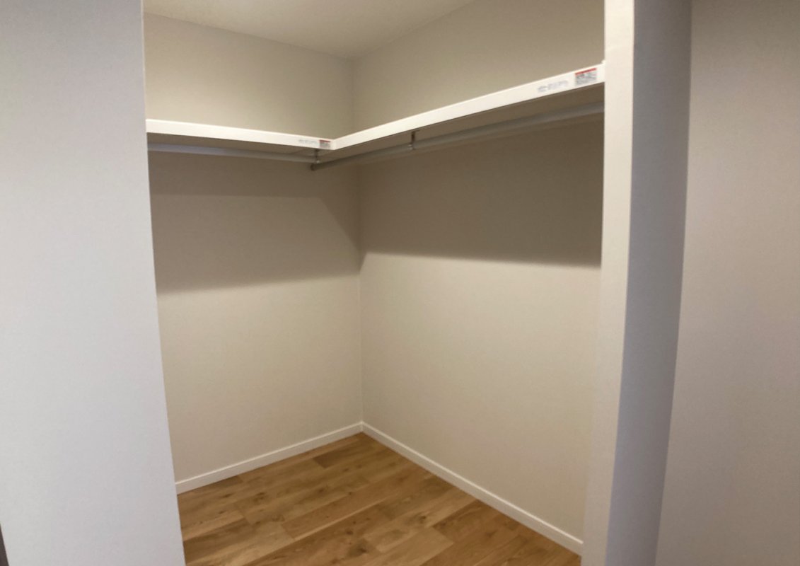 大きなカップボードやパントリーをキッチンに設置し、リビングには広々としたウォークインクローゼットを備えました。洋室にもクローゼットを設けることで、豊富な収納スペースを確保しました。