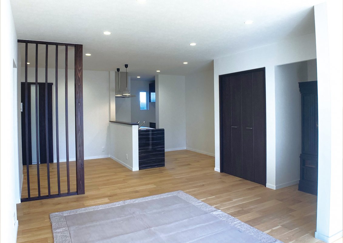 和室と縁側を撤去し、仕切り壁を取り払い、広々とした23帖のリビングに変更しました。開放感のあるリビング空間で、くつろぎや交流の場を提供します。