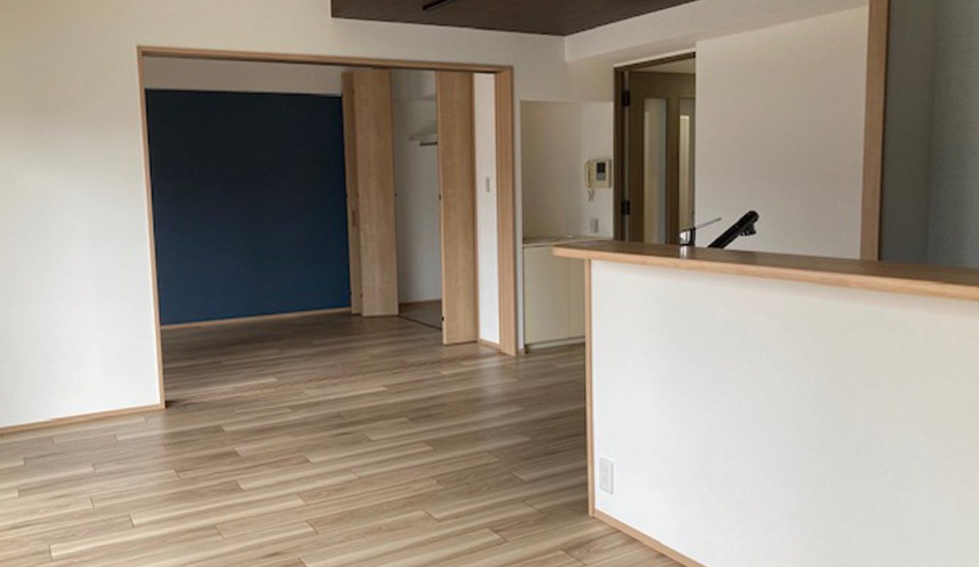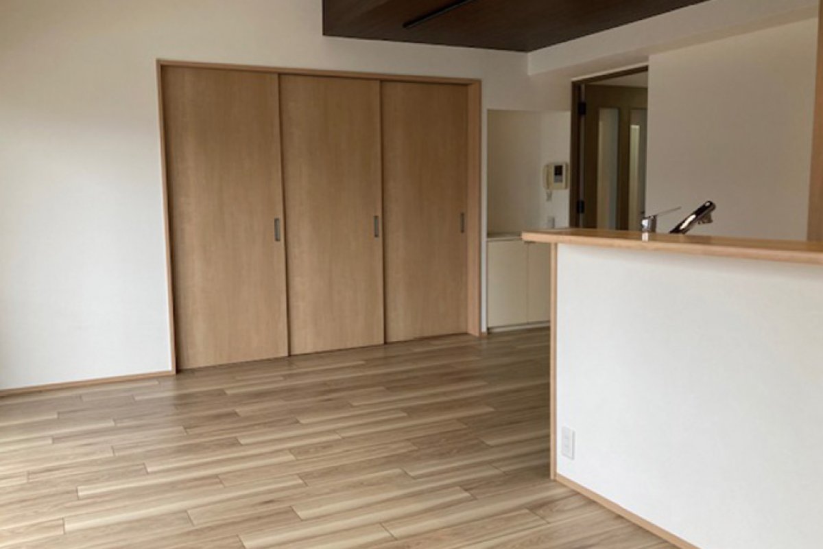 和室を洋室に変えることで、LDKの使い勝手が向上しました。洋室とLDKの境目には3枚の引き戸を導入し、自由な間仕切りが可能となります。これにより、プライバシーを確保しながらも必要に応じて解放感を持たせることができます。