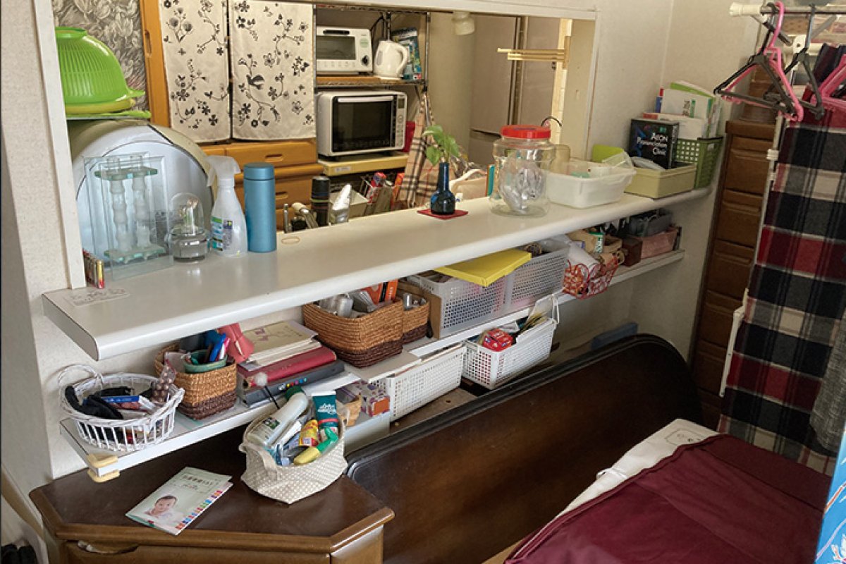 吊戸があり、LDKとキッチンの間には壁があることで閉鎖感が。