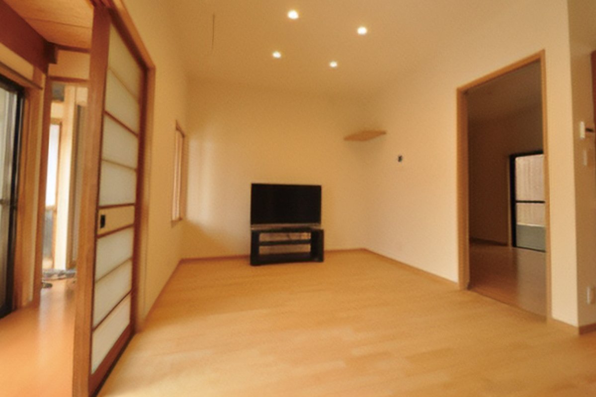 和室からリビングとのつながりを視覚的に感じさせるデザインにしました。小屋裏の断熱性能を向上させ、2階でも快適に過ごせるようにしました。桜の無垢材を使用して、足元も気持ちよく、畳との相性も良好です。広々とした空間に自然素材を活かし、明るく落ち着いた和室を演出しました。