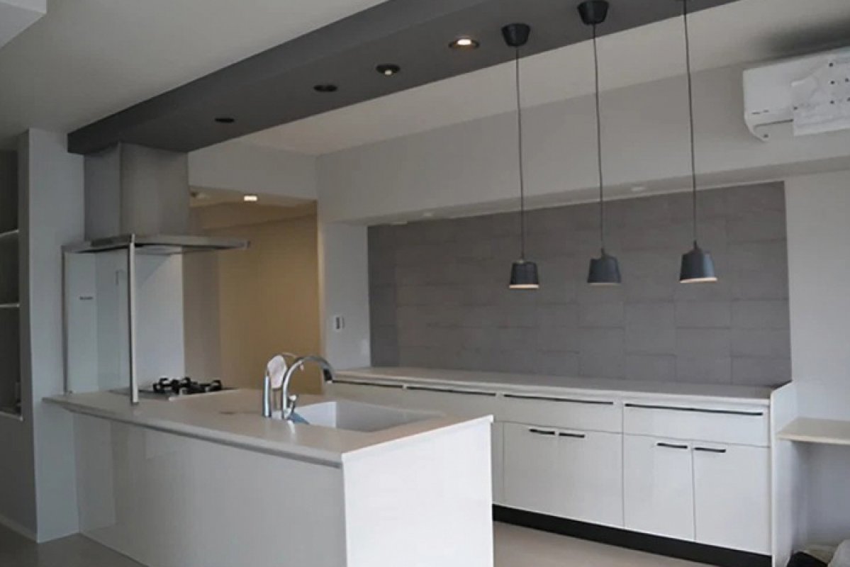 福岡市西区に位置する25年のマンション。お施主様からは「とにかくデザインにこだわりたい!照明を凝ったものにしたい。間取りを使いやすく。和室を使わなくなった。」といった熱い思いが伝わってきました。私たちはその要望に応え、キッチンをアイランド式にし、スタイリッシュな雰囲気を演出。さらに、RC感を出すためにコンクリート梁型の照明スペースをダクト配管のスペースに設け、光の美しさを最大限に引き立てました。和室は取り払い、広々としたLDKへと生まれ変わり、お客様の理想の住まいを実現しました。