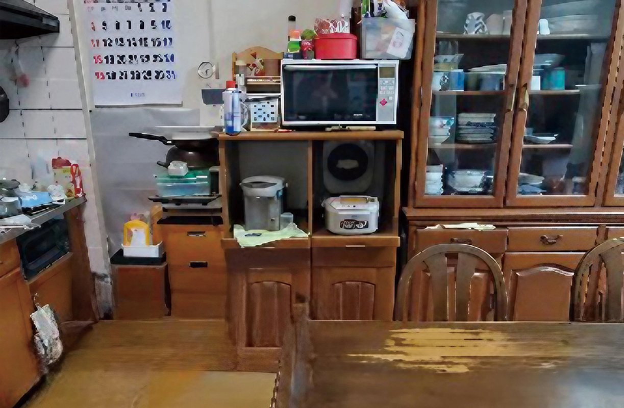 旧式の壁付けキッチンがあり、調理中も家族とのコミュニケーションが難しかった。