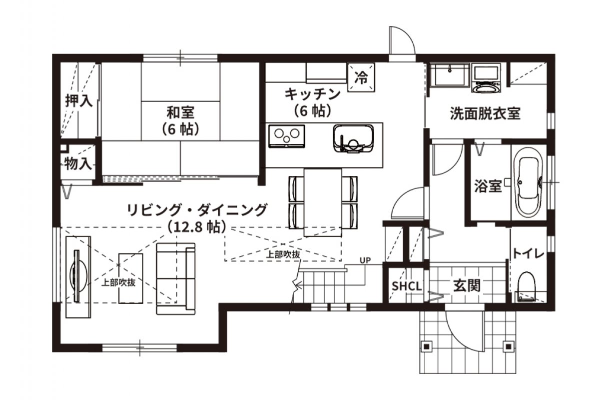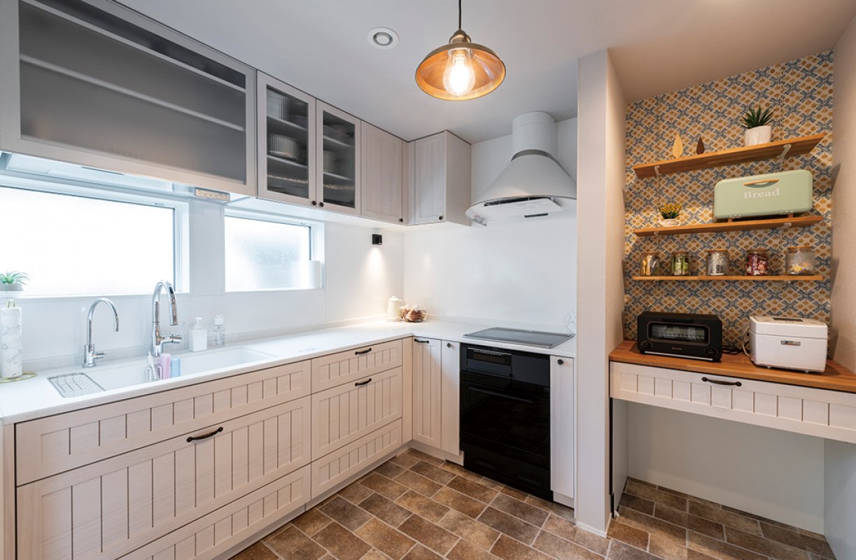 キッチンにはL型を採用し、動線を短くして効率的に調理ができるようにしました。