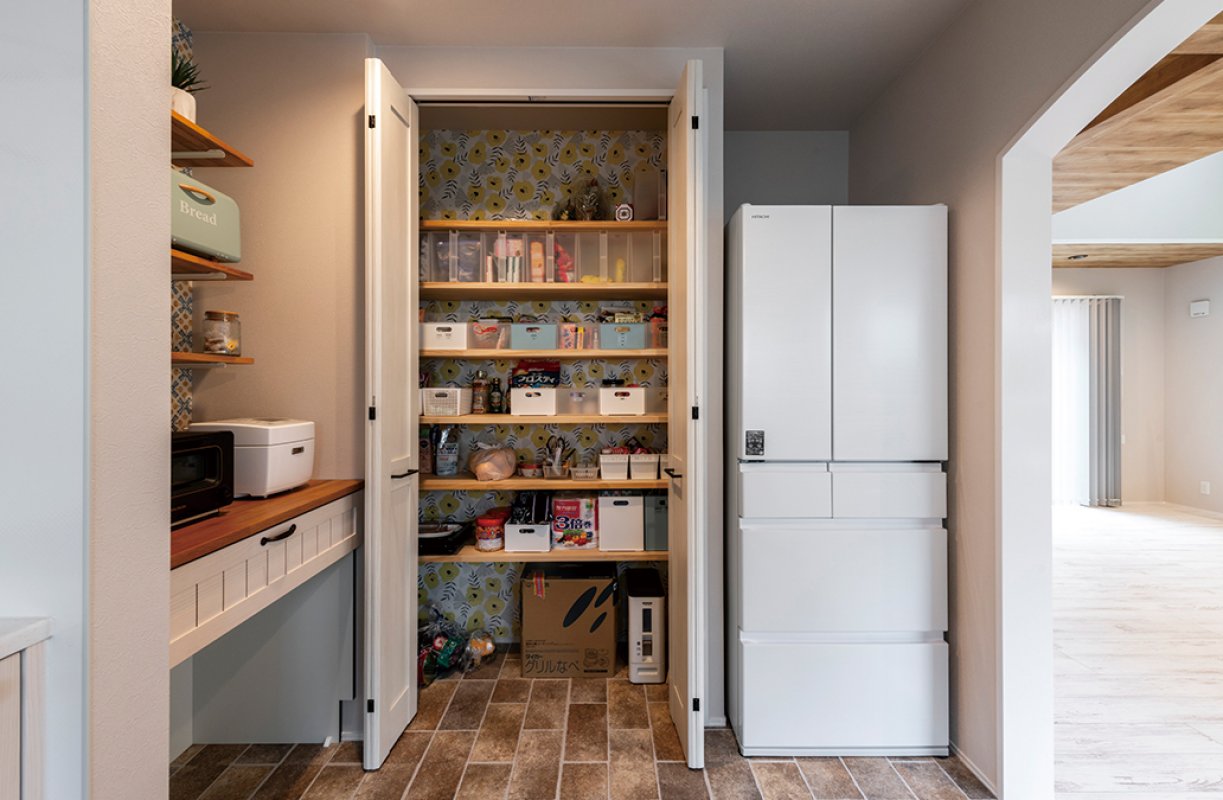 パントリーも設けて、収納スペースをたっぷり確保。