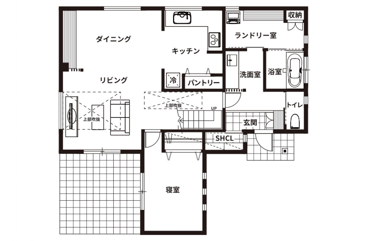 さらに、新たにランドリールームを設けることで、洗濯から乾燥、畳む作業までを一箇所で完結できるようにして、家事がスムーズに進むように工夫されています。