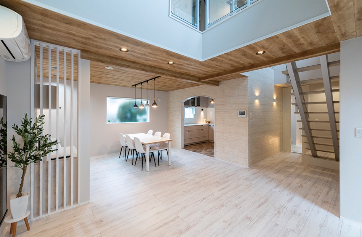 古い和室を取り除き、リビング、ダイニング、キッチンを一体化して広々としたLDKを作りました。
