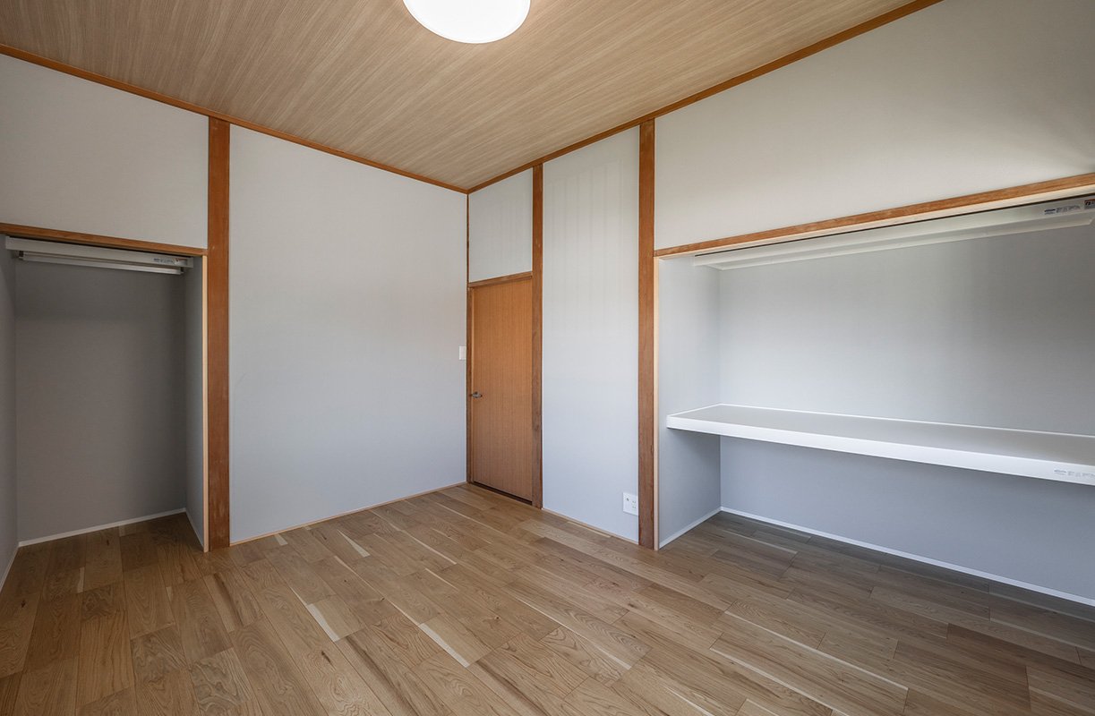 外観は古民家風のモダンな和風デザインに一新し、内装もアクセントクロスでおしゃれに統一。