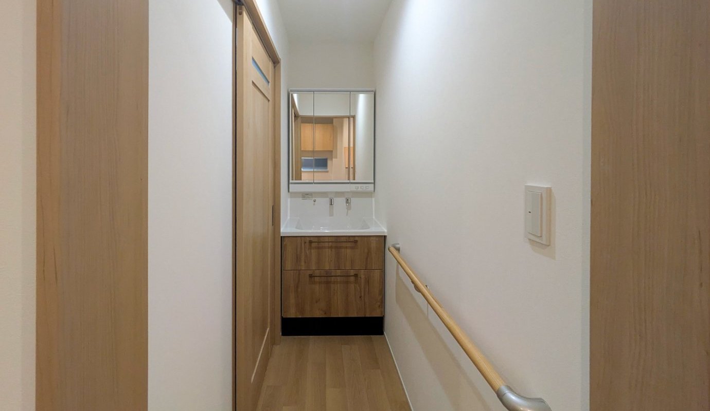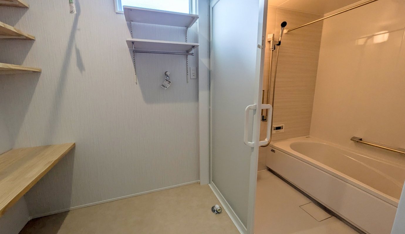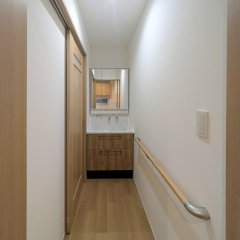 キッチン、浴室、洗面台、トイレといった水回りを一新しました。木目調と白を基調とした、清潔感あふれる空間に生まれ変わっています。最新のシステムキッチンやユニットバスを導入することで、機能性が大幅に向上。使いやすく、お手入れも簡単になり、快適な暮らしを実現しました。