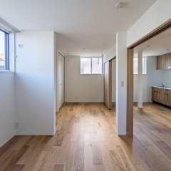 新しく生まれ変わった家は、木のぬくもりと白を基調とした、明るく開放的な空間が広がります。床や建具に使われた淡い木目調の素材が、部屋全体に統一感と温かみを与えています。窓を増設したことで、自然光がたっぷりと差し込み、より広々とした印象に。まるで新築のような、清潔感あふれるナチュラルなデザインへと生まれ変わりました。