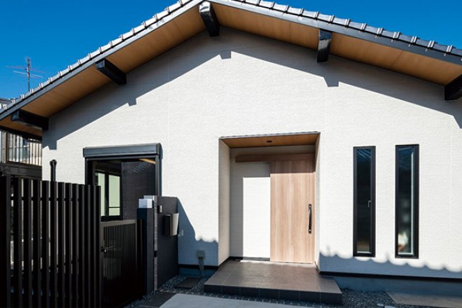 玄関や窓も最新のデザインに変わり、特にスリット窓がアクセントとなり、家全体がモダンでスタイリッシュな印象です。