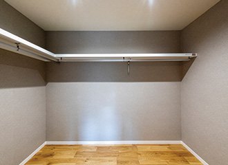 隣接する大容量のウォークインクローゼットには、夫婦の衣類や季節物もすっきり収納でき、効率的な収納を実現しています。