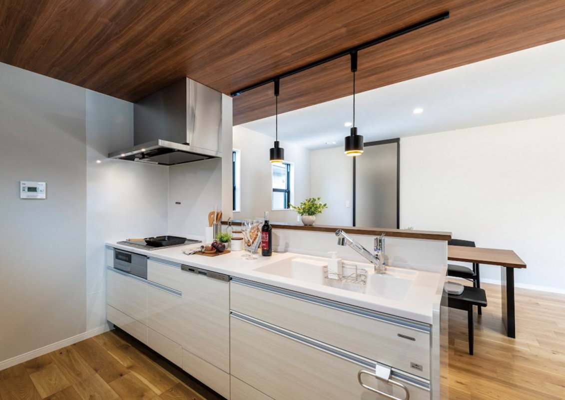 ダイニングスペースの横には造作カウンターが設けられ、家族の趣味スペースやお子様の勉強スペースとして多目的に活用できます。